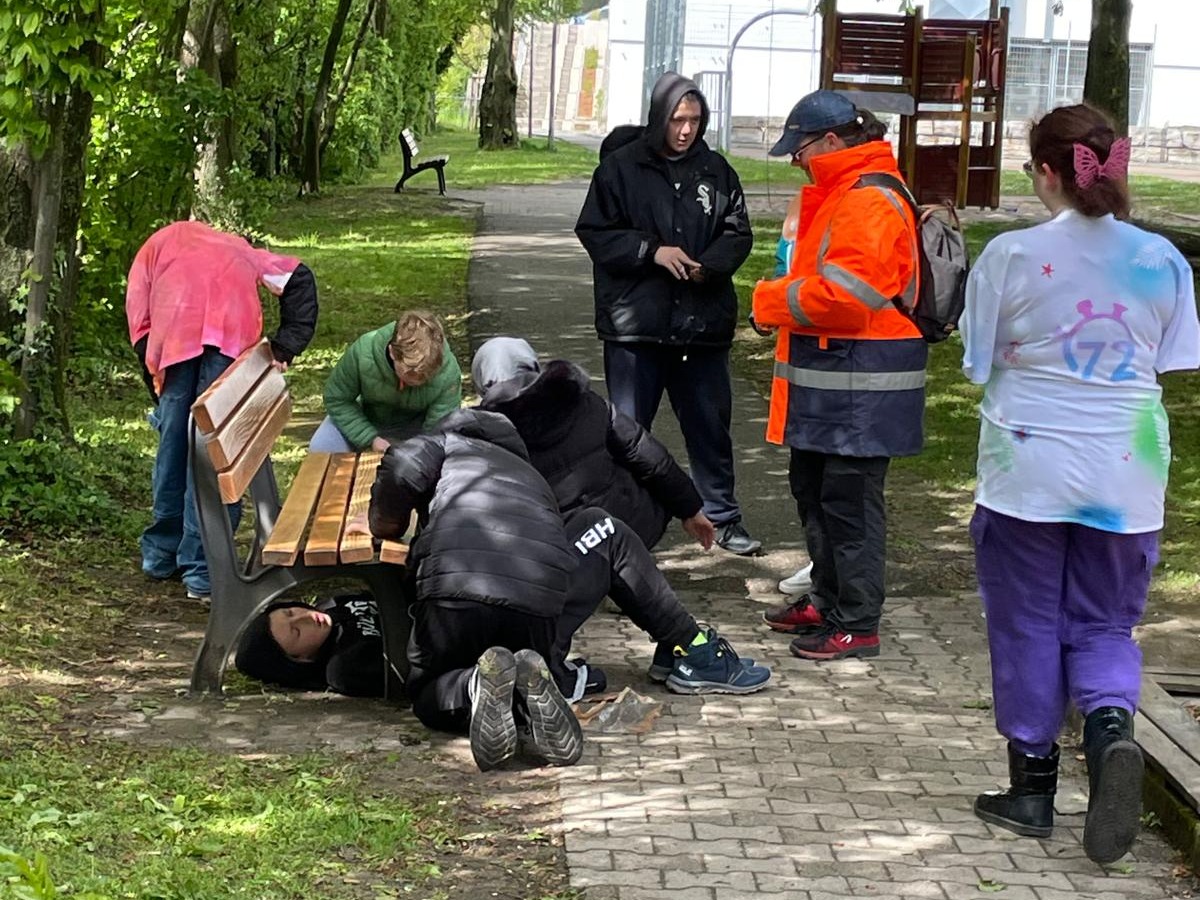 Einfach war die Aufgabe auch deshalb nicht, weil das Wetter nicht mitspielte. Holzsitzbänke schleifen und streichen bei Regen. Nicht möglich. Doch Herr Trefz hilft weiter. „Wir hätten gute Verwendung für Schilder, die zur Nutzung der Mülleimer auffordern“.