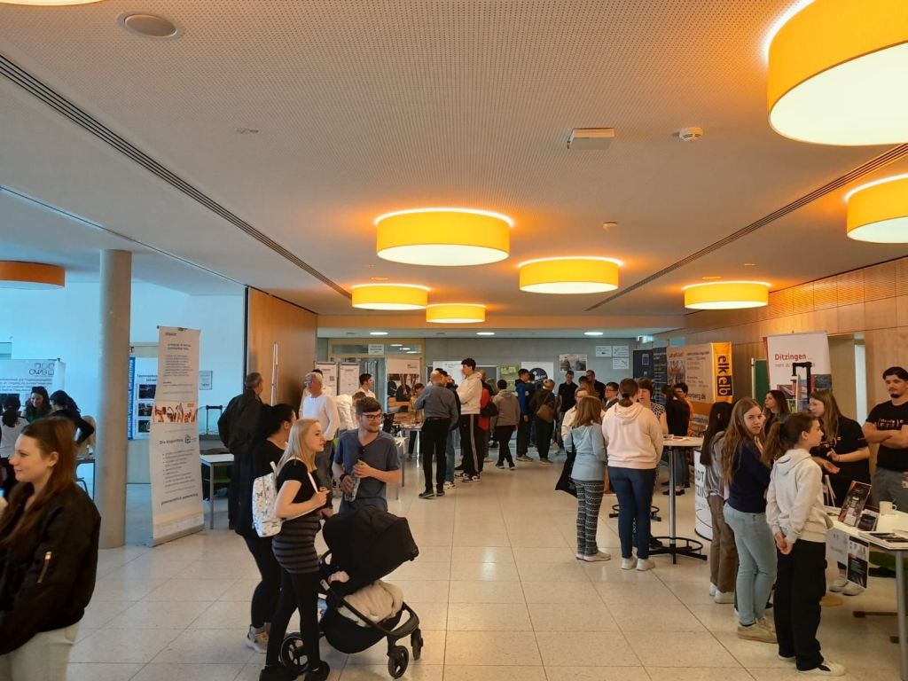 An der Theodor-Heuglin-Schule fand am Mittwoch, dem 3. Mai erstmals das Ausbildungsforum GET CONNECTED zum Kennlernen von regionalen Unternehmen und staatlichen Einrichtungen für Schülerinnen und Schüler der Sekundarstufe statt. Hierbei konnten sich kleine bis große Unternehmen aus der Region anmelden und 20 davon haben die Möglichkeit genutzt, sich der Schülerschaft und den Eltern zu präsentieren und ins Gespräch zu kommen. Die Schüler/innen verfolgten interessiert die Angebote und vorbereiteten Informationen der Betriebe zu Praktikumsplätzen, Ausbildungsberufen und den Unternehmen selbst. Die Stimmen des ersten Forums waren durchgängig positiv, wie beispielsweise Herr Neumann von der Firma Gretsch Unitas wie folgt bestätigt: „Die Gespräche, so empfinde ich das, haben auf absoluter Augenhöhe stattgefunden. Das ist sehr ungewöhnlich! Daher ein großes Lob an die Schüler/innen.“