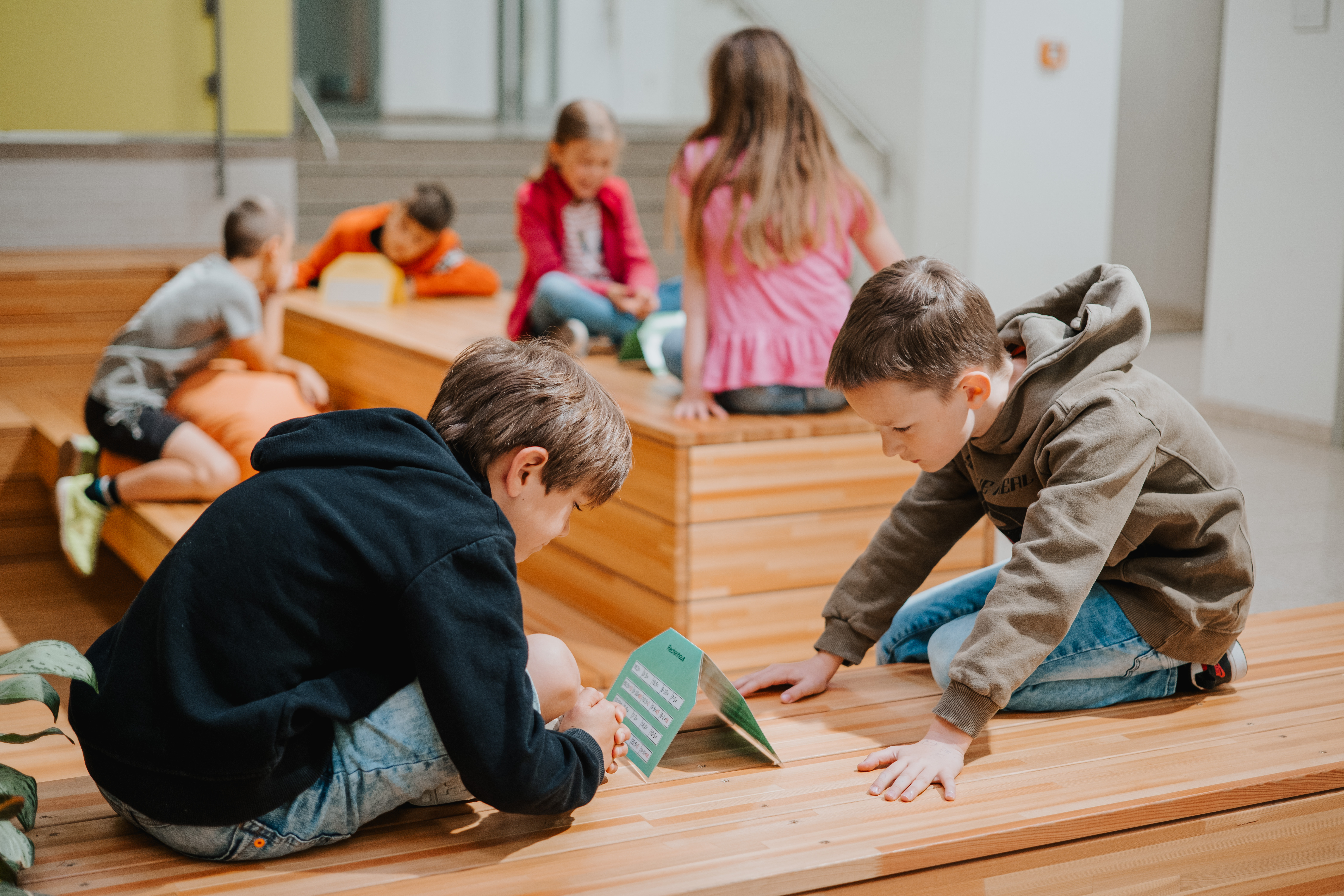 Das individuelle Lernen wird durch regelmäßige kooperative Lernformen ergänzt. Dabei arbeiten Schülerinnen und Schüler mit wechselnden Lernpartnern, Sprechen über Gelerntes und wiederholen und vertiefen dabei die Lerninhalte. Die Schüler und Schülerinnen nutzen verschiedene Methoden, Techniken und Verfahren, um ihre Lernergebnisse zu präsentieren und zu visualisieren. Beispiele hierfür sind Plakate, Rollenspiele, Leserollen, Artikel für Schaukästen oder Zeitungen bis hin zur tabletgestützten Präsentation.