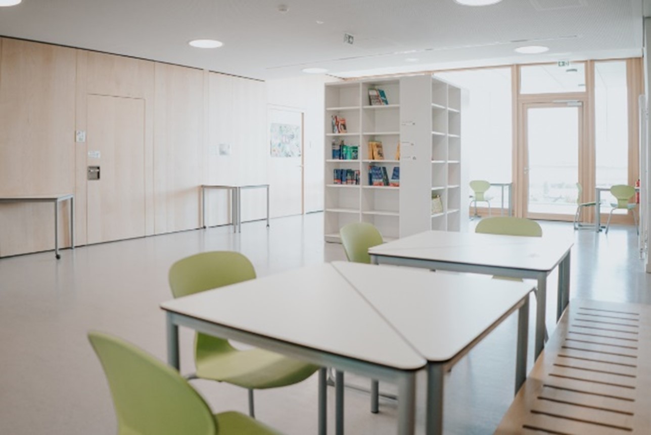 Die sehr gut ausgestatteten Klassenzimmer und Lernateliers bieten den Schülerinnen und Schülern die Möglichkeit, individuell und kooperativ zu lernen. Durchgängige Fensterfronten sorgen für viel Tageslicht und schaffen eine einladende Atmosphäre. Alle Klassenzimmer und Lernateliers sind mit digitalen Tafeln und Medientischen ausgerüstet. Das flexible Mobiliar erlaubt zudem eine multifunktionale Nutzung der Räume und ermöglicht neben allen denkbaren Sitzordnungen auch die flexible Einrichtung von Leseecken, Freiarbeitsregalen und Lerntheken. Auf diese Weise wird das Klassenzimmer / das Lernatelier von Klasse 1-10 zum optimalen Lernort, an dem sich jeder wohlfühlt und gut arbeiten kann.